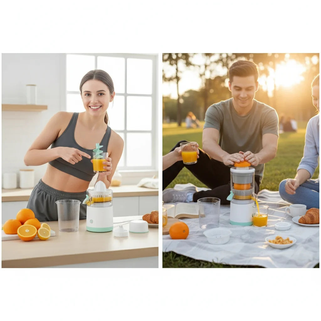 Disfruta la pureza de la fruta recién exprimida. Con nuestro extractor portátil USB, obtén jugos deliciosos y llenos de vitaminas en segundos, donde quieras. Su tecnología de extrusión en espiral asegura el sabor más fresco y original. ¡Tu dosis diaria de vitalidad nunca fue tan fácil!