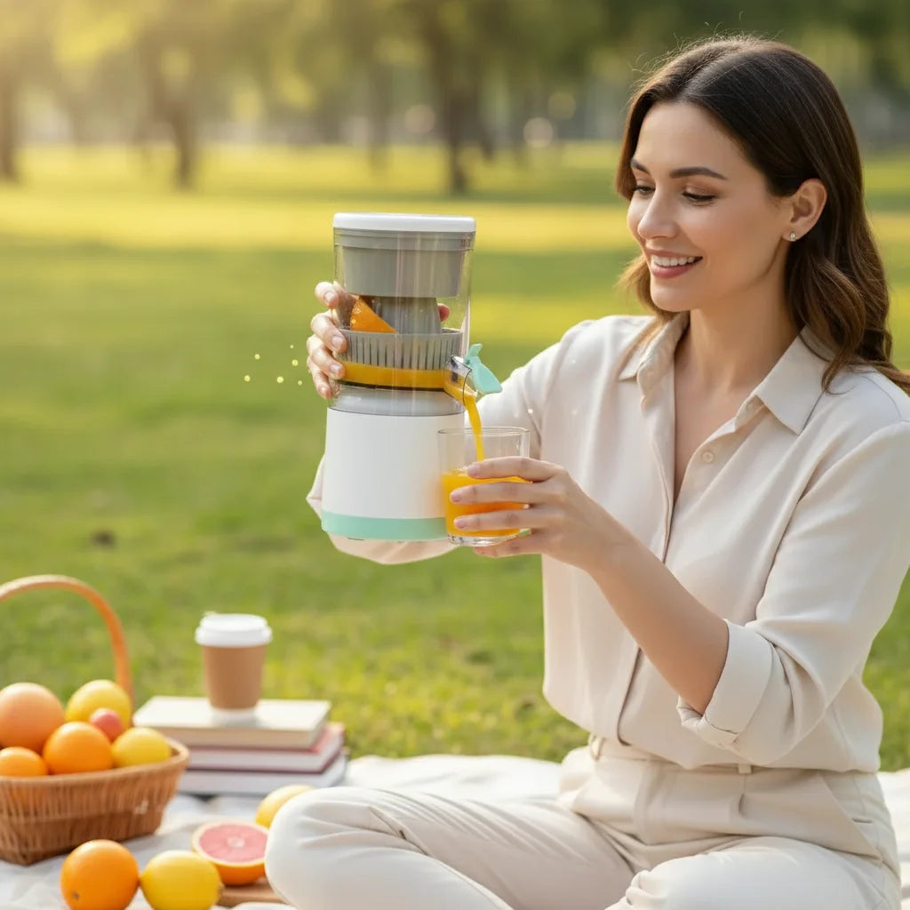 ¿Aún atado a la cocina? Tus amigos ya llevan la frescura a todas partes con este extractor recargable. ¡No te quedes sin tu dosis de energía on-the-go!
