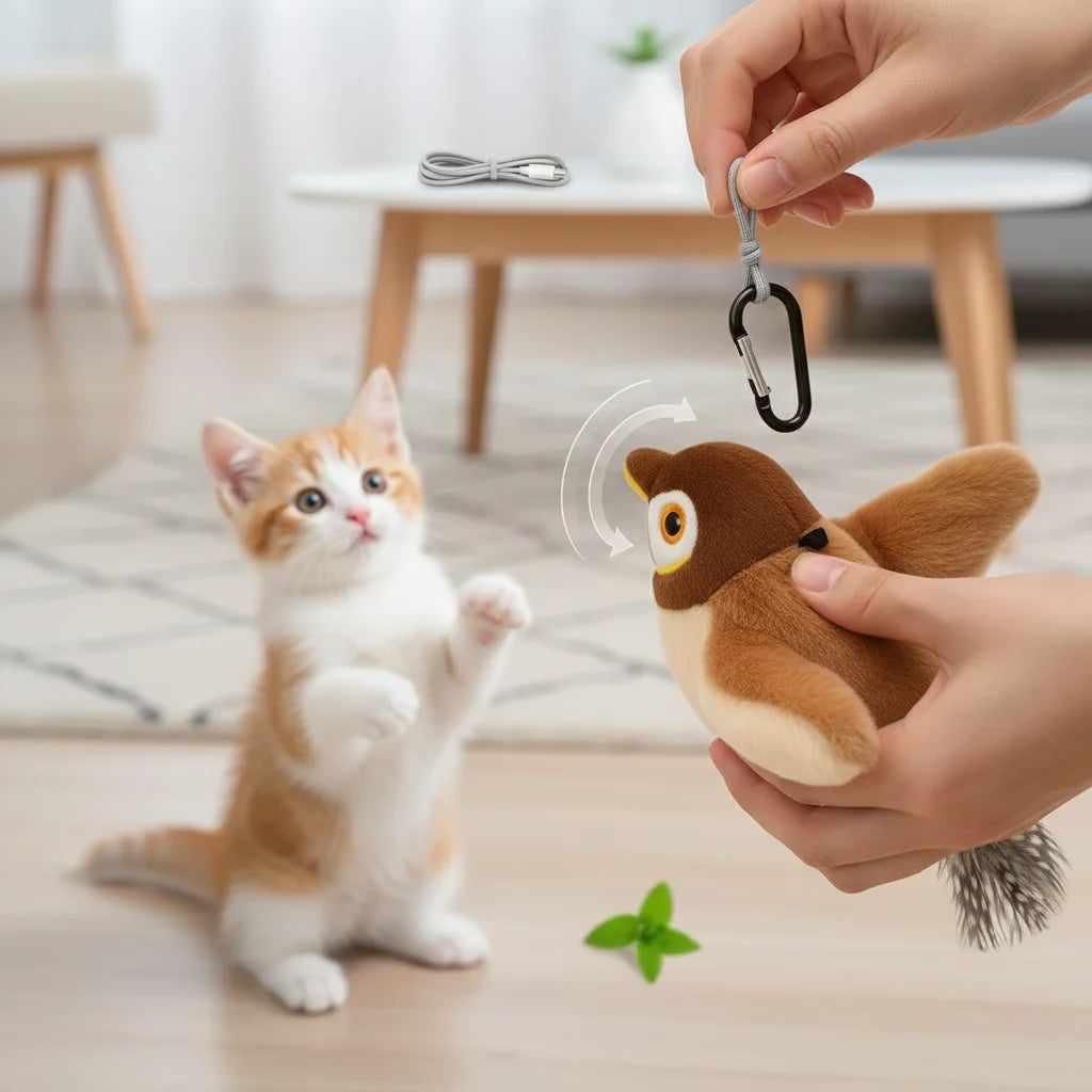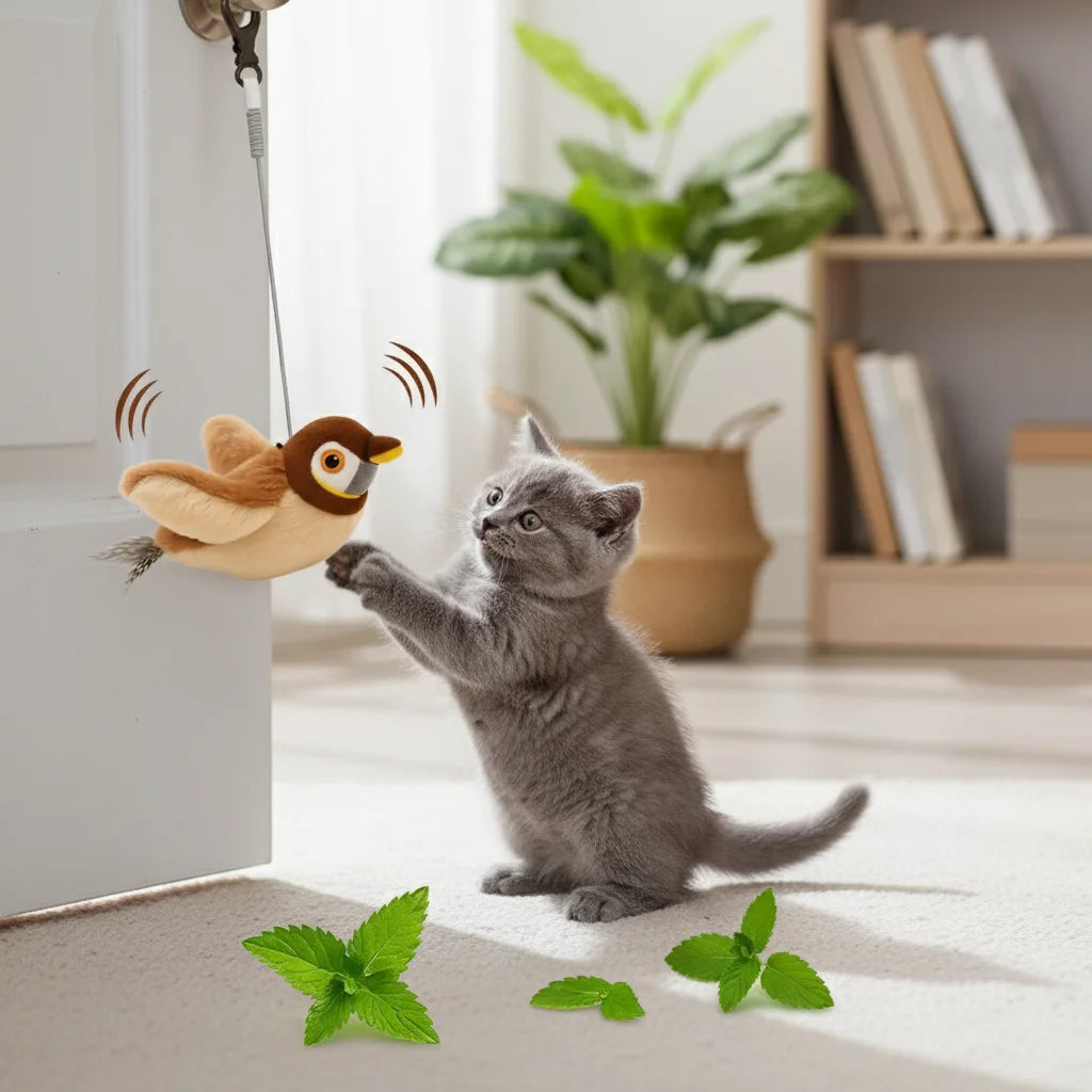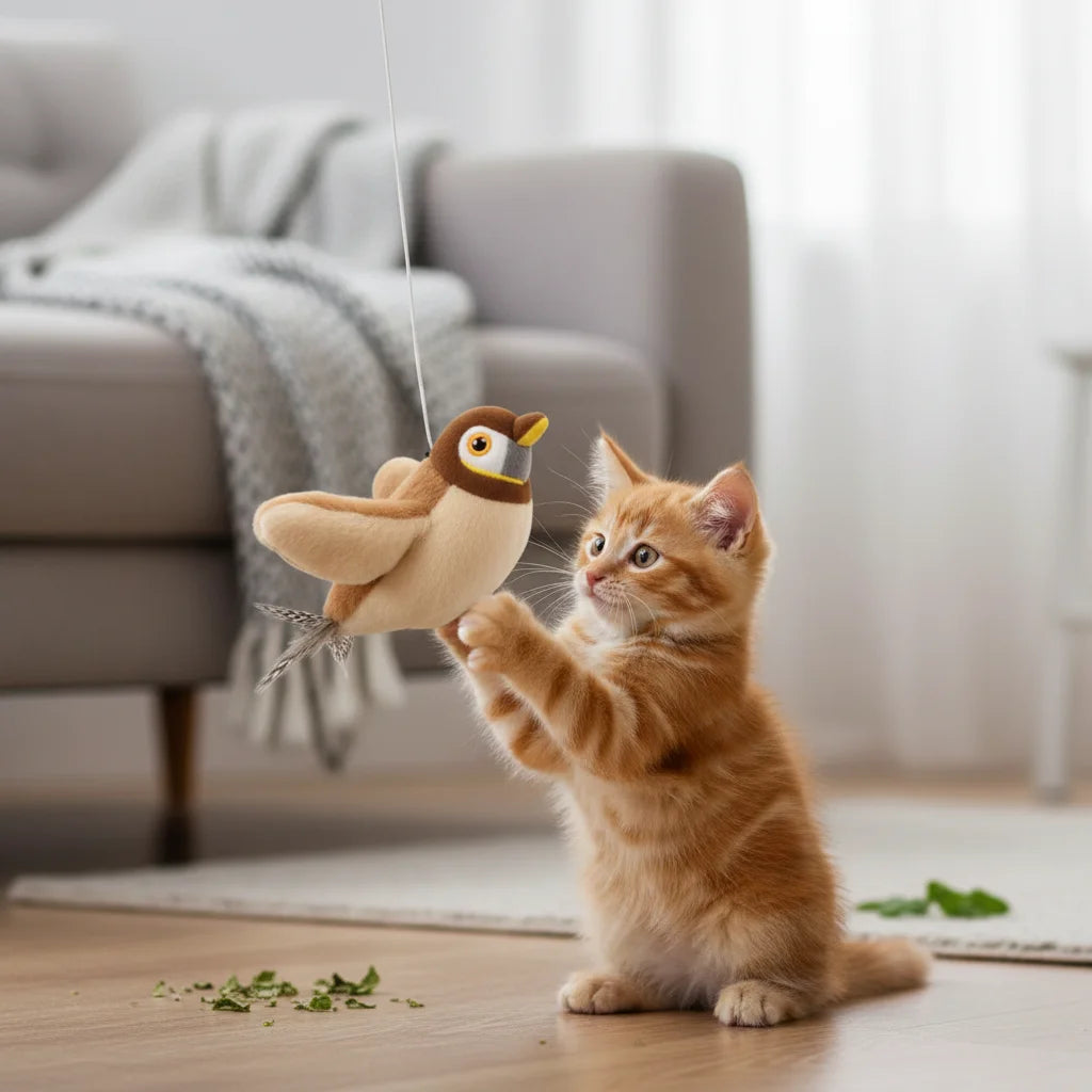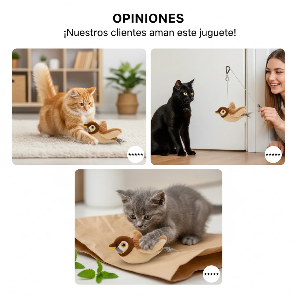 Mira cómo sus alas aletean y emite sonidos irresistibles, ¡como un pájaro de verdad! Tu gato no podrá resistirse a la caza.