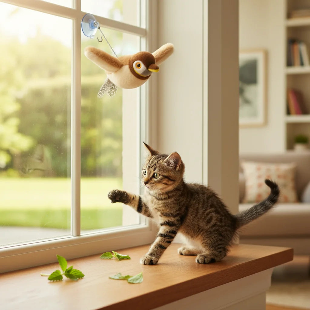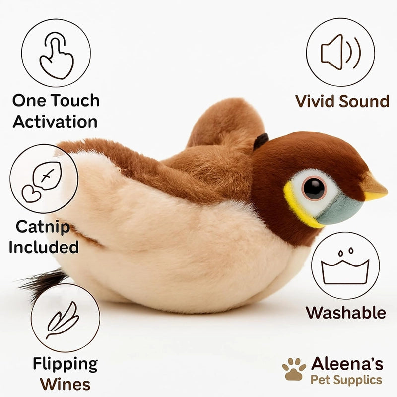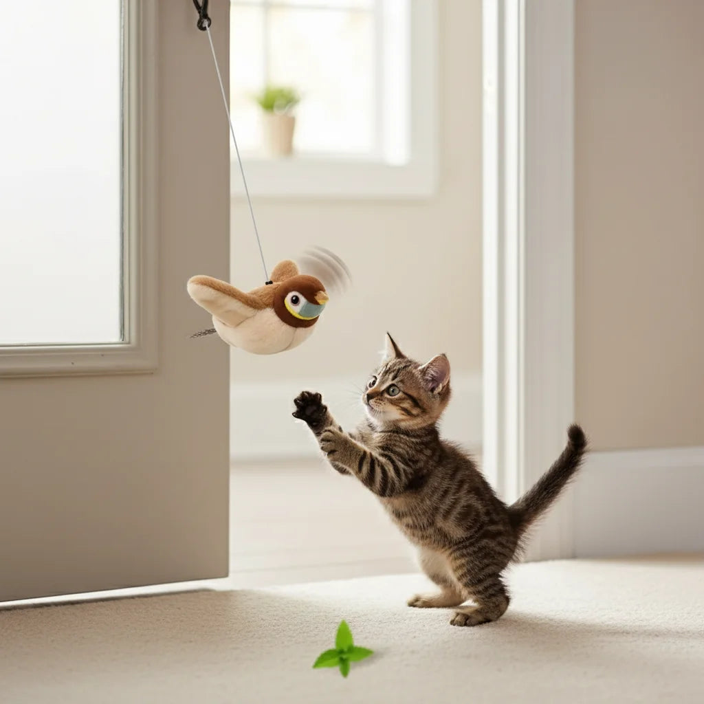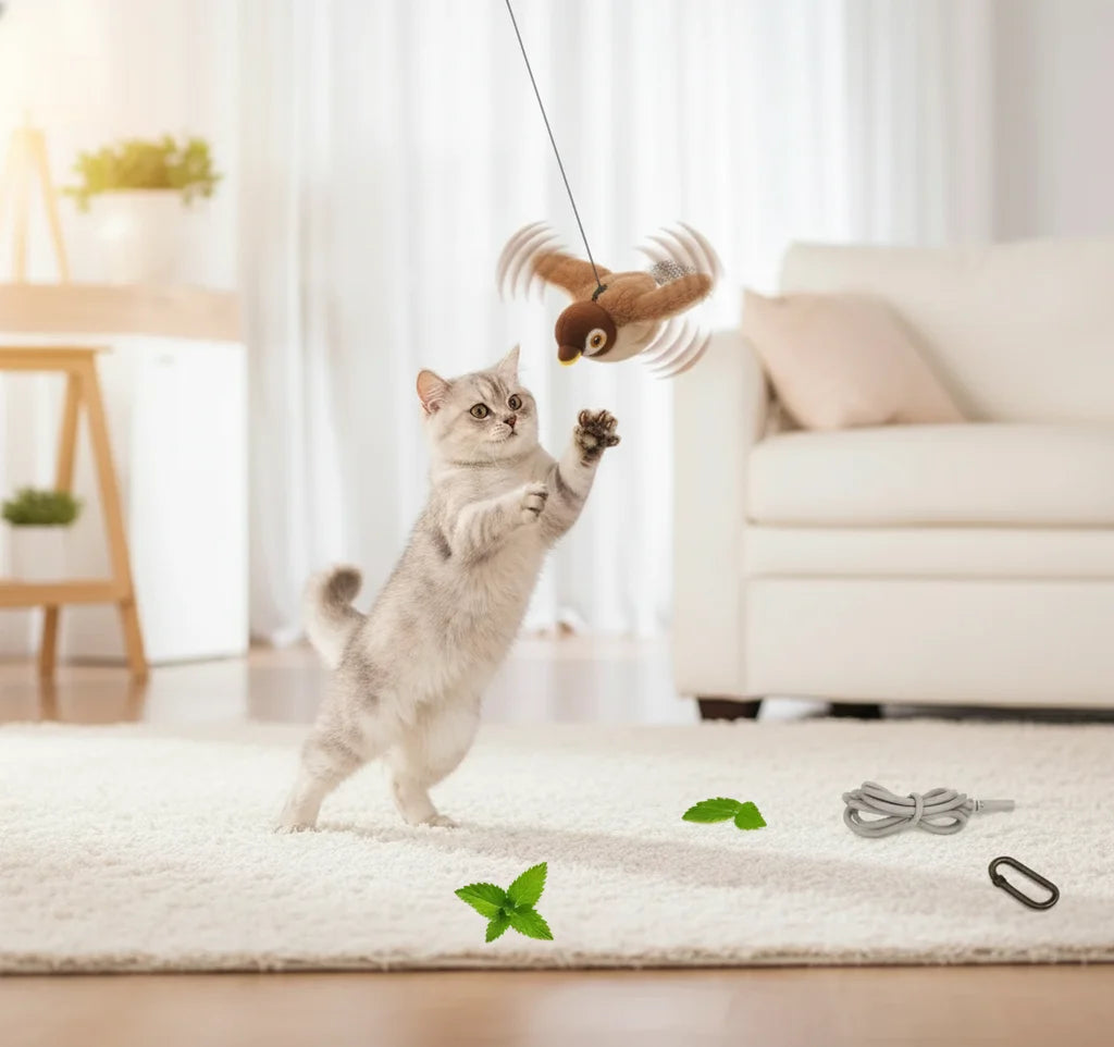 No es solo un juguete, ¡es una experiencia de caza inmersiva! Sus alas aleteantes, sonidos realistas y la opción de catnip lo convierten en el estimulante definitivo. ¡Prepárate para ver su transformación!
